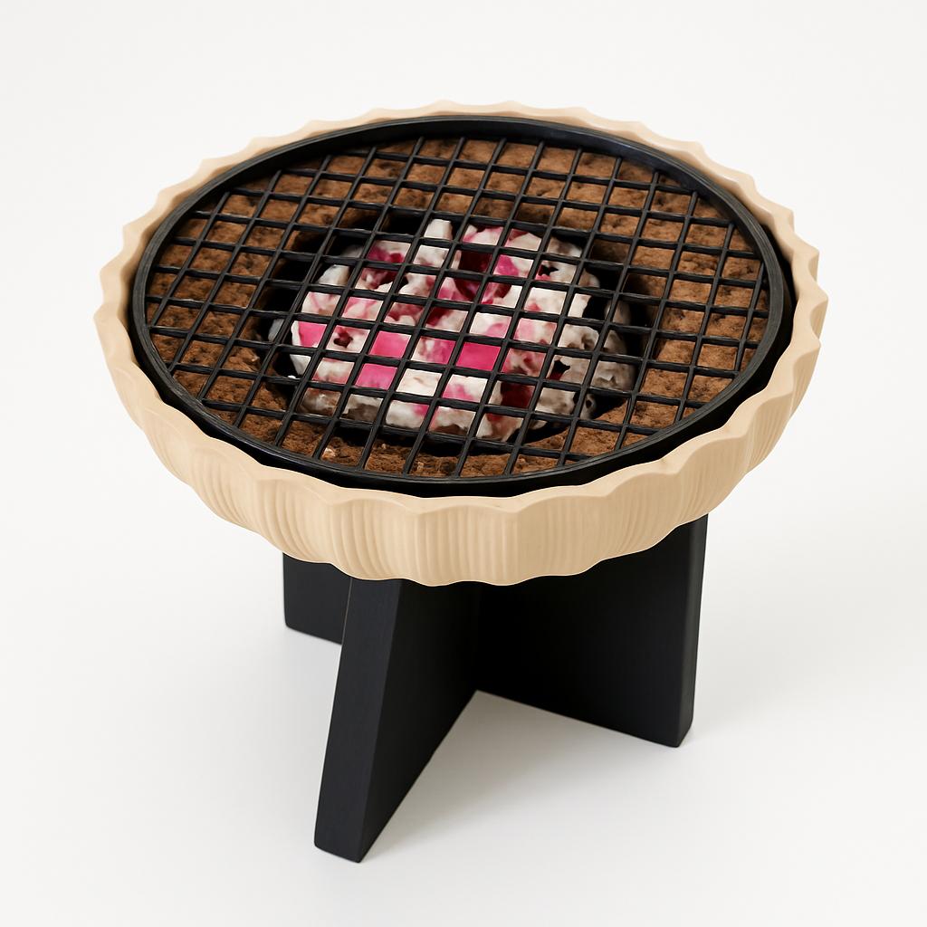Stone-inspired firepit with a refined texture, with a metal base. Decorative rocks included!